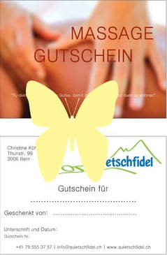Unter 'Gutschein für' vermerke ich, wenn nicht etwas anderes gewünscht, Massage/ Therapie und die Dauer.